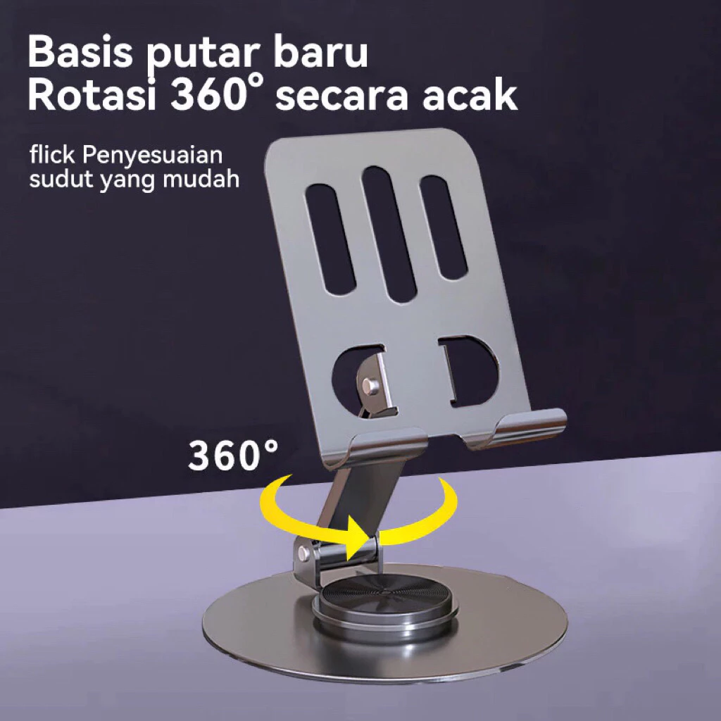 • Holder HP & Tablet Rotasi 360° Dudukan Ponsel Lipat Portable Besi Metal Stand